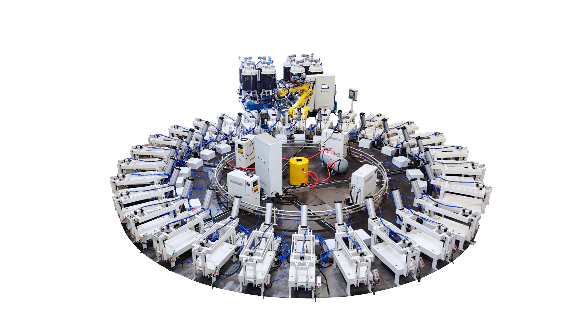 隨著社會發(fā)展,新能源汽車行業(yè)的崛起。目前汽車行業(yè)針對產(chǎn)品需求量大,為了滿足該行業(yè)的產(chǎn)品需求我們推出了高壓發(fā)泡機、低壓發(fā)泡機以及配套的自動化生產(chǎn)線,針對不同的產(chǎn)品需求,我們提供不同的解決方案。以下是部分自動化生產(chǎn)線解決方案。1. 全自動圓盤生產(chǎn)線是領(lǐng)新自研的全自…